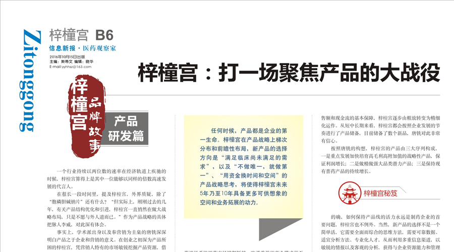 《医药观察家报》梓橦宫药业品牌系列报道——梓橦宫:打一场聚焦产品的大战役